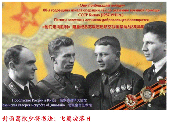 刘伯承元帅之子刘蒙将军为纪念苏联志愿空军队援华抗战挥毫题字:“正义之剑 铁血并肩”。