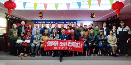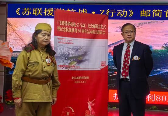 2026 年1月14日下午,由中国的苏联飞鹰寻访团和老兵方阵邮简发布平台共同策划的纪念抗战胜利80周年活动收官联谊会暨《飞鹰援华抗战 • Z行动》纪念邮简首发在北京市东城区新怡商务楼举行。何继明将军、李筱松、柯马凯、任公伟、杨晓明、王常福、罗解难等八十多位社会各界嘉宾,以及俄罗斯联邦驻华大使馆代表丽兰前来参加。