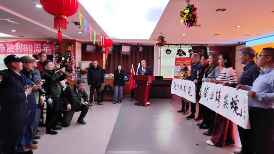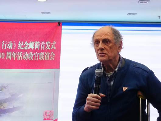 苏联飞鹰寻访团团长罗解难在致辞中总结了2025年的活动情况,表示新年伊始举行的这次《飞鹰援华抗战·Z行动》纪念邮简首发式和收官联谊活动很有意义,为纪念中国抗战和二战胜利活动画上一个圆满句号。