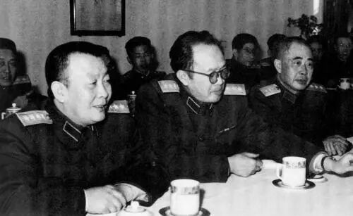 1958年2月,黄克诚(中)与谭政(左),陈明仁(右)在第一届全国人大五次会议上。