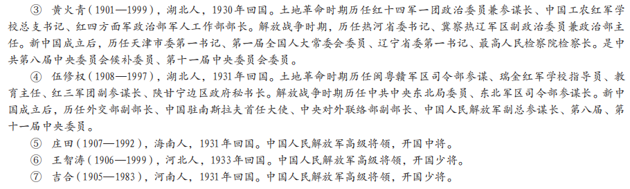 此外,留苏军事学员,参照苏联军事院校的办学经验、制度,创办了人民军队一系列军事学校,并参考苏联军校的课程设置,结合中国革命战争的实际,制定了本土化的军政训练计划,为人民军队军事教育事业的正规化、现代化奠定了基础。