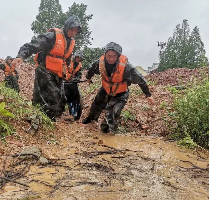 第73集团军某旅“二级战斗英雄连”先后参加过抗日战争、抗美援朝战争。7月14日,连队抵达上饶市余干县康山圩堤任务区。他们充分发扬“攻坚克难,敢打必胜”的优良传统,连队10余名党员骨干连续作战,每天在堤坝上抢险到凌晨两点多,早晨又带队出发加固堤坝。