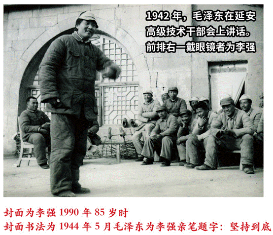 封面书法为1944年5月毛泽东为李强亲笔题字:坚持到底