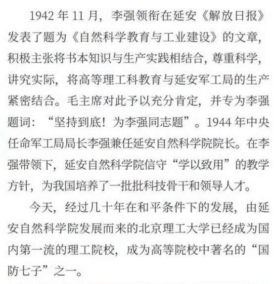 ————————他在延安提出将学院和工厂结合起来,走科学研究和生产实践相结合的道路。(《匕首之刃》)