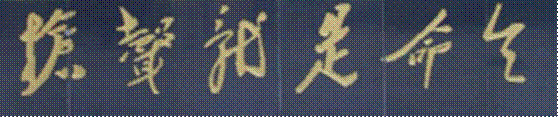 ——————— 向前!向前!向前!我们的队伍向太阳,脚踏着祖国的大地,背负着民族的希望,我们是一支不可战胜的力量。(《中国人民解放军军歌》)