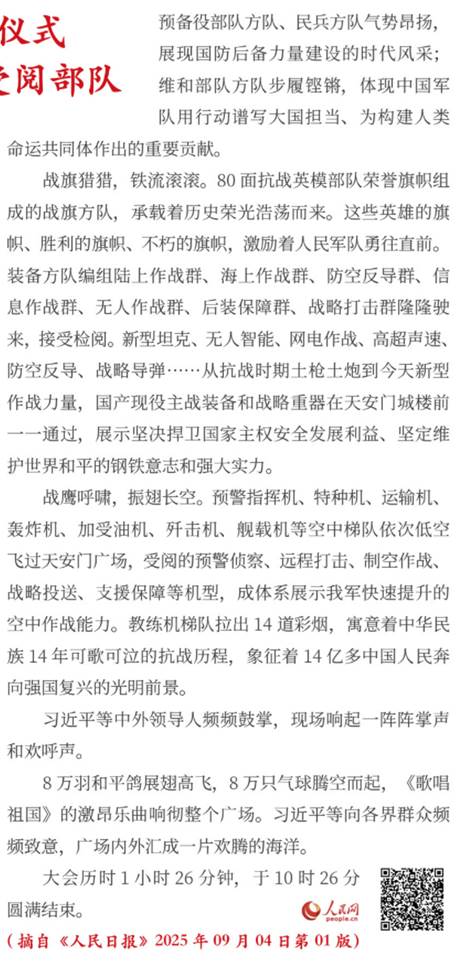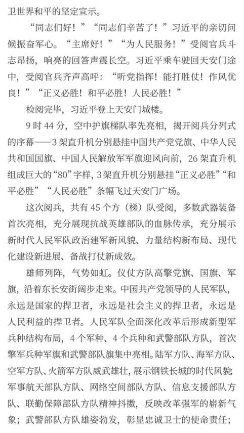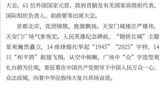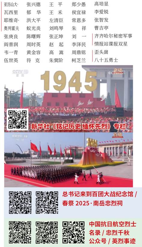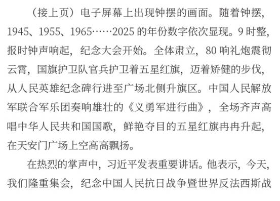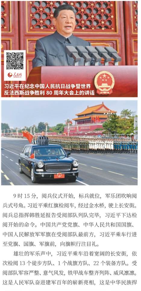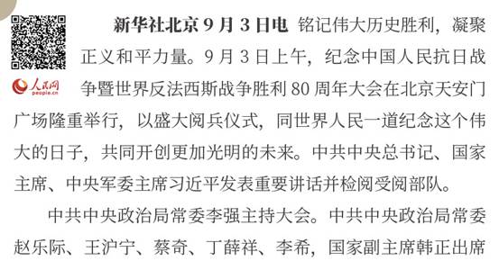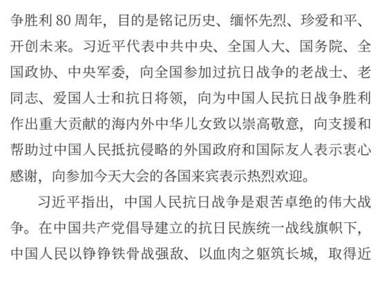 隆重纪念中国人民抗日战争暨世界反法西斯战争胜利80周年,目的是铭记历史、缅怀先烈、珍爱和平、开创未来。(习近平)