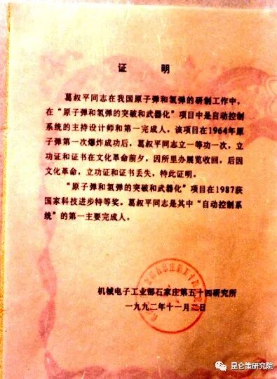 今年8月23日是我父亲葛叔平的祭日,河北省科工局在“河北省军民融合促进会”微信平台以“中国第一次核试验成功,我父亲荣立一等功”为题专门发文纪念我的父亲。并且引用了去年河北省委宣传部“长城网”对我们兄弟和父亲当年助手的部分采访录像。推荐阅读登有我父亲事迹的:《罗布泊上空升腾的蘑菇云背后的峥嵘岁月》(《河北工人报》2019年5月31日);《五十四人为你讲述:中国首枚原子弹的“大脑”如何诞生》(中国电科54所微信号);《中国首枚原子弹的“大脑”如何诞生》(《环球时报》2019年9月19日);《忆“两弹一星”元勋葛叔平与第一次核试验》(“长城网”2019年4月20日),不禁使我感慨万分。