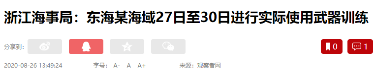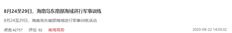 1、演习范围覆盖中国四大海域,且仅在8月24日一天,就有南海、黄海、渤海三大海域同时展开演习。