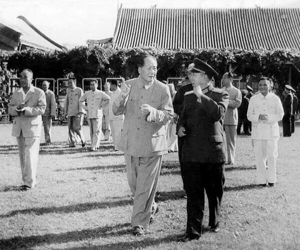 五十年代末,毛主席与刘亚楼上将亲切交谈