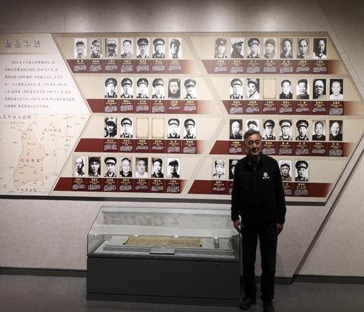 图:武乡八路军太行纪念馆太岳军区展板,首排右四为史健。国图复制的《赵城金藏》一卷陈列在展柜里,彰显太岳军区的荣光。