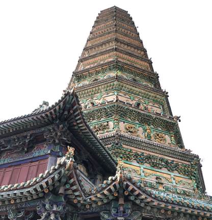 图:“世界最高的多彩琉璃塔”飞虹塔[经世界纪录认证机构(WRCA)2018年8月实地考察,郑重宣布是“世界最高的多彩琉璃塔”],成为世界之最,是中国四大名塔,尤以精美琉璃著称。塔二层前侧几扇窗户当夜紧急打开,经书从这里一捆一捆掷下,极大赢得了抢运时间。