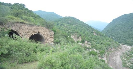 图:石门峪是运经集结地和史健当晚的指挥点,左侧三官庙窑洞为赵城县大队原驻地。当晚史健下到石门峪迎候经卷,靠前指挥以防不测,确保“万无一失”。通往亢驿的进山小路蜿蜒崎岖,有一夫当关万夫莫过之险,过此隘口意味着广胜寺抢经圆满成功。