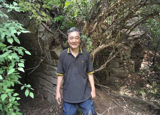 图17:古县热留“东山岭惨案”幸存者范如连(1925~1976)之子范国强2019年6月15日在当年窑前,激愤控诉日寇的暴行。