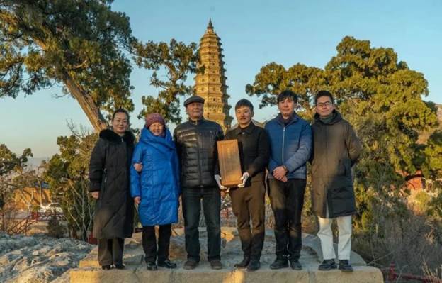 2020年12月15日,八路军研究会办公室主任(现任八路军研究会副会长兼秘书长)陈赓大将孙女陈怀申(左2)与李万里、李林昊、赵成帅、段建风等,携最新发现“《赵城金藏妙法莲华经文句卷八》登临广胜寺,溯源寻根续写经卷800年传奇。
