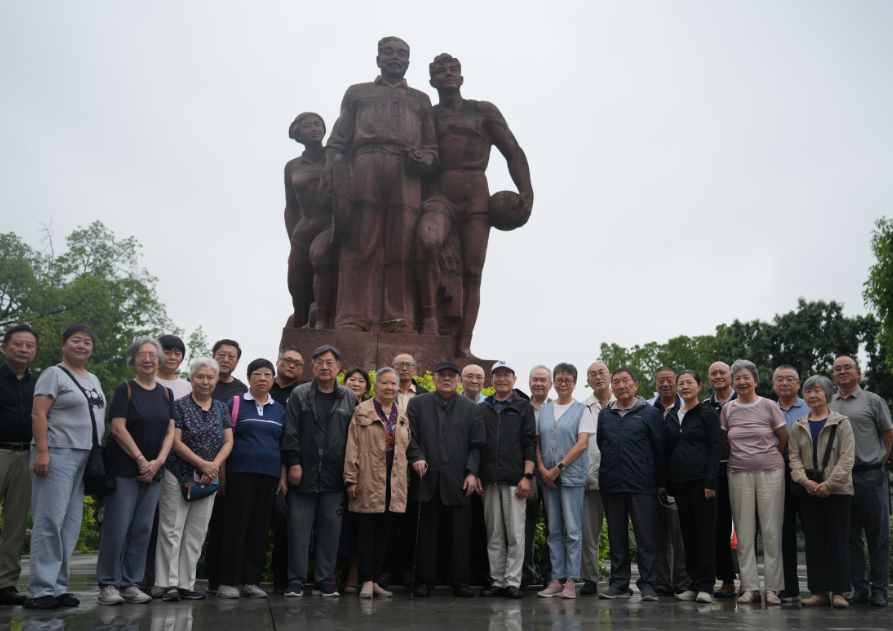 一行人首先来到大田湾(重庆)体育馆,在贺龙元帅铜像前肃立致敬,深切缅怀老一辈革命家的丰功伟绩,随后集体合影留念,以影像定格对先烈的追思。紧接着,成员们前往解放碑,驻足这座见证城市沧桑与时代变迁的地标前,在历史与现实的交汇中感悟重庆的红色底蕴与城市精神。
