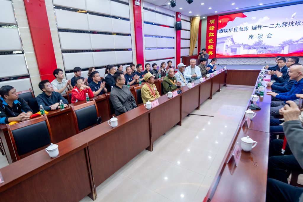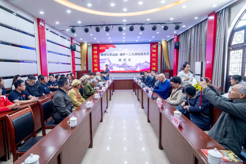 参拜祭扫后,围绕“忆峥嵘岁月 弘扬129师魂 共筑爱老情”这个主题,缅怀、回顾、纪念、分享、致敬,与会者进行了座谈,座谈者有刘伯承元帅之子刘蒙、李达上将之子李迪民、毛主席弟弟毛泽民烈士外孙女曹立亚、八路军研究会太行分会组织部长、原中央军委办公厅副主任兼解放军档案馆馆长刘振杰将军之女刘乃苓、杜义德将军之子、八路军研究会太行分会副会长杜伟、(我军第一支马步枪发明人)刘贵福之子刘建国、德州市委党史研究院特聘党史专家,八路军研究会太行分会会员尹永亮、容易文化艺术(北京)有限公司董事长、八路军研究会太行分会会员刘铸宽、晋冀鲁豫烈士陵园研究馆员刘伟、八路军研究会太行英雄网总编马正、河北省民俗文化协会副会长,主办方代表慕宇(先生),河北省文化交流协会副会长温鸿亦、河北省民俗文化协会会长王建设、河北省民俗文化协会副会长魏胜祖、河北慈氏慈善基金会秘书长刘洪艳、八路军一二九师纪念馆馆长李洪义、副馆长申利芳以及抗战老兵代表李文廷、顾超、杜士林和他们的亲属等。