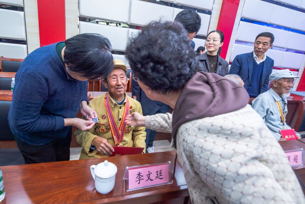 八路军研究会太行分会组织部长刘乃苓为几位老八路颁发了八路军研究会纪念章