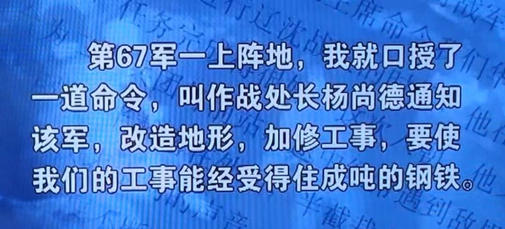 下面的影视是第20兵团司令员杨成武派兵团作战处长杨尚德到第67军布置任务,加强防御。