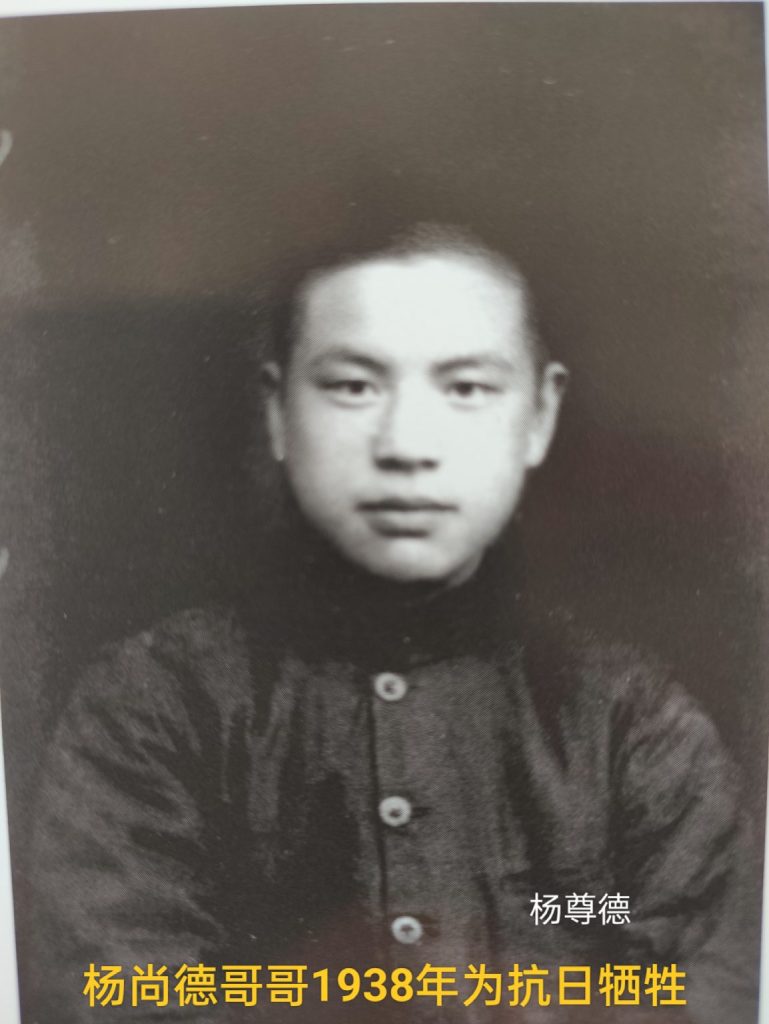 在抗日战争时期,杨尚德的父亲杨炳昌和哥哥杨尊德为抵抗日寇的侵略而光荣牺牲。