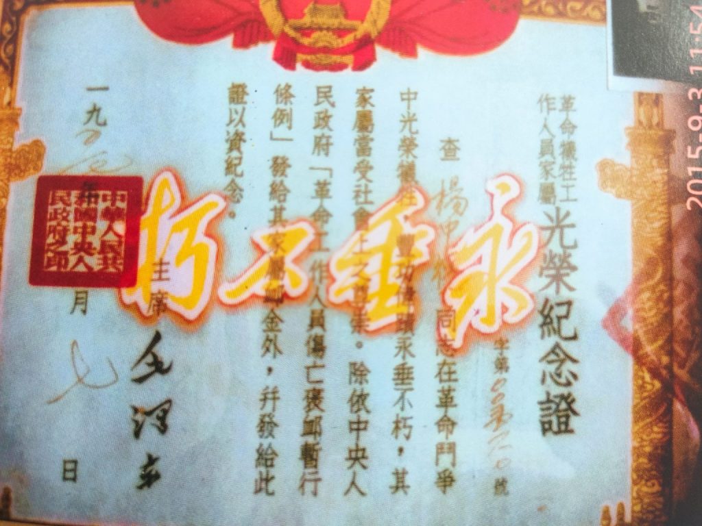 这次他的弟弟杨恒德又牺牲在抗美援朝的战场上,真是满门忠烈。在杨尚德的家人中,杨尚德是唯一幸存下来的男人。向杨尚德的家人们致敬!