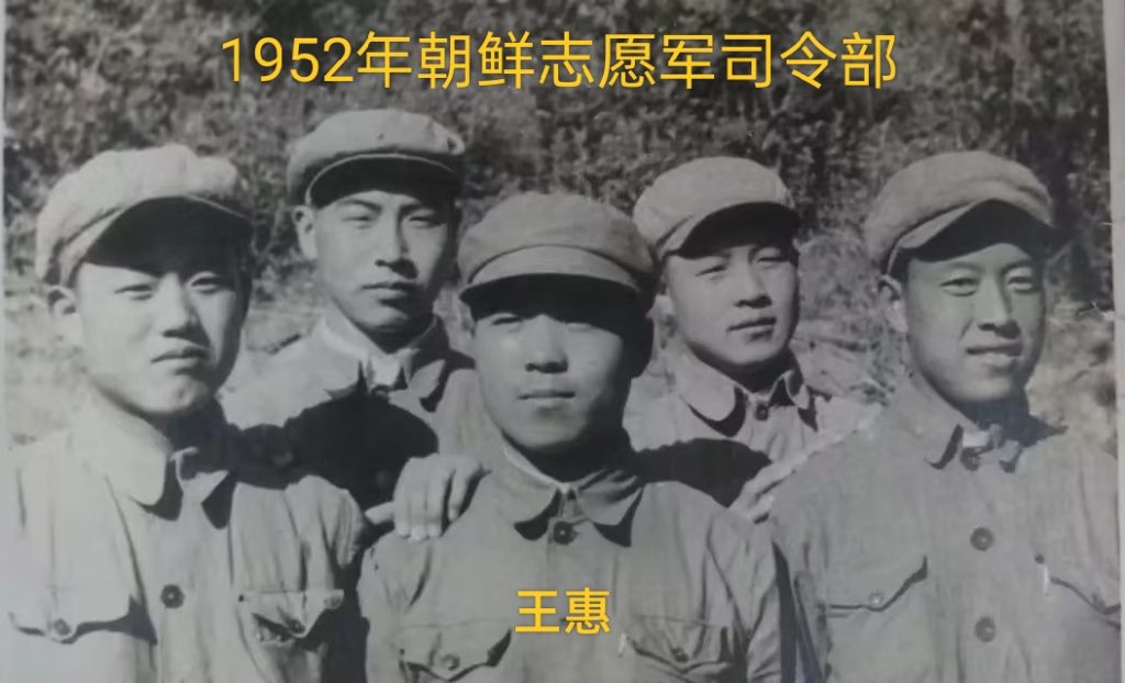 这张照片是我父亲王惠在志愿军司令部同战友们的合影,中间的是我父亲王惠。