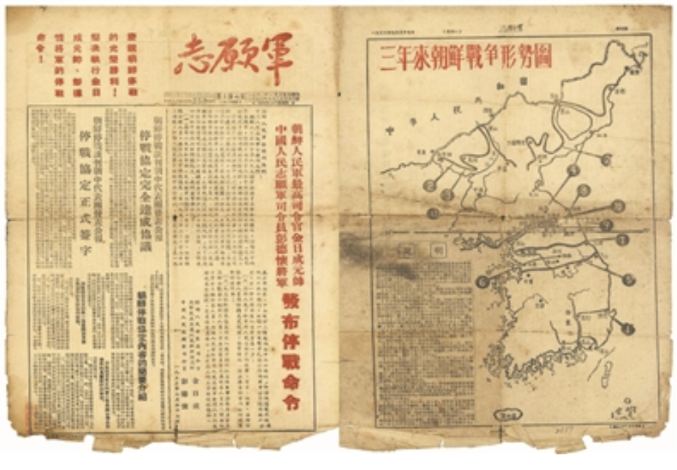 1953年7月27日,朝鲜停战协议签订的当日出版的志愿军报。