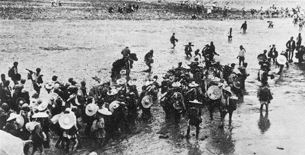 ◆1948年4月18日,西府陇东战役期间,解放军部队强渡泾河,向陕西西府地区挺进。