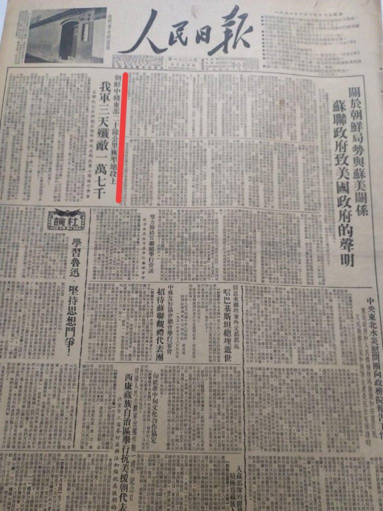 1951年10月18日,新华社播发了《我军三天歼敌一万七千人》的消息。19日,人民日报头版报道了这一重大胜利:朝鲜中线东部二十余公里狭窄地段上,我军三天歼敌一万七千。21日,《人民日报》发表记者述评:“这是一件具有重大意义的事件,是美国侵略者的不祥征兆”。敌人的致命弱点是兵员有限,只要我们大量的杀伤敌人,就是对其重大的打击。而我军强大的后备军,就是一支悬在敌人头上的正义之剑。
