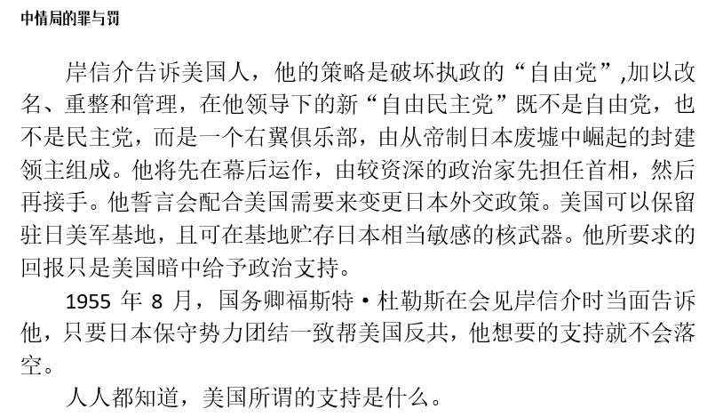 为了不让日本变天,美国财界和CIA联手,逼着日本保守派合并。钱从哪来?CIA给!