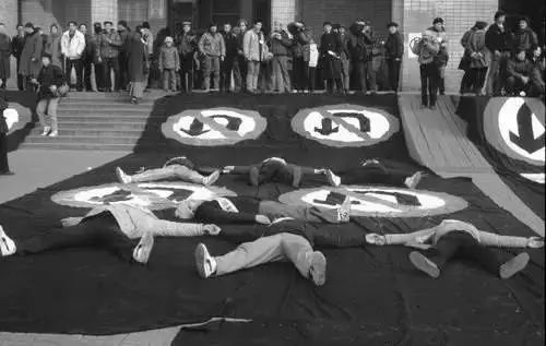 第一个“中国现代艺术大展”在中国美术馆开展。在这次大展中,曾有行为艺术家向自己的作品“电话亭”开枪,造成“美术馆开枪”事件。这是艺术家们在“不准掉头”的标识上展示创意。