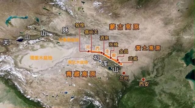 甘肃,北部为沙漠和蒙古高原,南部是祁连山脉,是东部链接新疆的必经之地,是极为重要的“走廊”(在古代,甘肃也称为“河西走廊”),也是中国和中亚、西亚的必经之地;