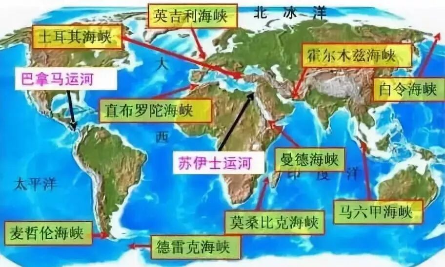 然而,由于美国为了称霸世界,拥有强大的海军,控制了海上所有的要道,全球16个海峡周边的国家有军事基地。