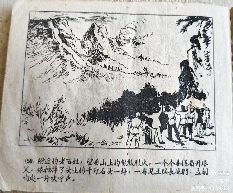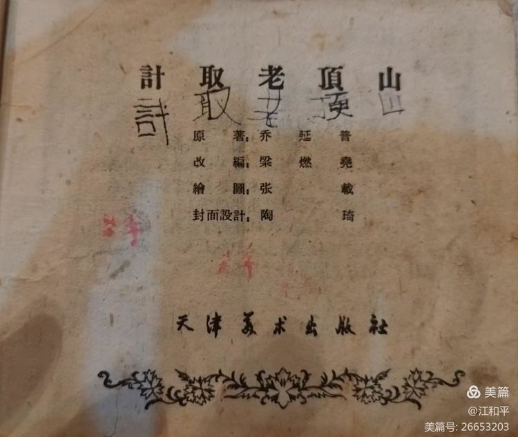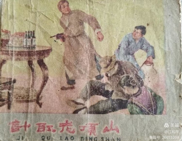 我逐页观看了小人书《计取老顶山》,该书共计50页,1959年由天津美术出版社出版,乔延普编著,张载绘图。这本发黄褪色的小人书同我父亲的作文是同一年的作品,共同展现了那段传奇故事。只是小人书中的细节比我父亲的文章更具戏剧性,同样具有收藏价值。