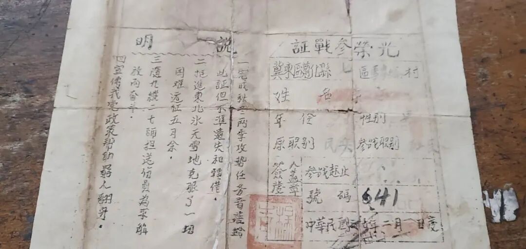 河北遵化党峪镇马家峪村发现一张辽沈战役参战证,这个参战证已经保存了70多年,参战证上相关内容如下:
