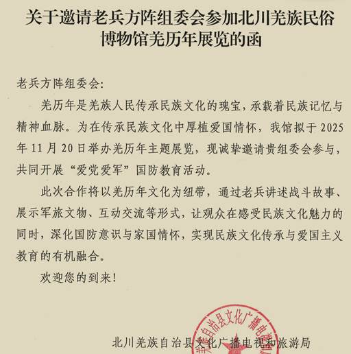 此次合作以羌历年文化为纽带,通过老兵讲述战斗故事展示军旅文物、互动交流等形式,让观众在感受民族文化魅力的同时,深化国防意识与家国情怀,实现民族文化传承与爱国主义教育的有机融合。据悉,展览将延至年底并邀请社会各界参观。
