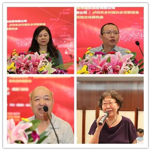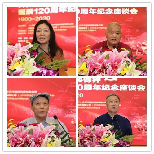 乌可力先生(原中共中央政治局委员、原国家副主席、开国上将乌兰夫之子),万伯翱先生(原全国人大常委会委员长万里之子),俞敏先生(第一次国共时期中共四届中央委员会委员、中共上海区委书记和国民党上海区委书记俞秀松之子),魏兰同志(原解放军艺术学院院长、著名书法家魏传统将军之女),刘水生先生(《香港法治报》社社长),黄继军先生(广东省东莞市江西吉安同乡会),李守效先生(内蒙古广达将军笑酒业有限公司董事长),以及四川省泸州市政协常委、泸州市乡村振兴乡贤联谊会常务副会长、傅钟将军亲属白虹女士,李晓春先生(广东省东莞市耀凯精密有限公司董事长),原总政干部部老干部局副局长、老兵方阵组委会秘书长周绪银大校先后讲话。与会的原第二炮兵副政委、罗荣桓元帅之子罗东进中将,中国人民解放军军事科学院原副院长徐根初中将和郭沫若的女儿郭庶英即席发言。
