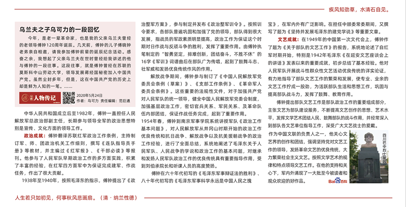 傅钟将军辞世已经31年了,他的老战友们也都悉数远去。但是,傅钟将军家乡的亲人们,以及傅钟将军老战友的后人们,对傅钟将军的思念和感怀,从来就不曾淡忘。而且随着时间的流逝,这种思念和感怀之情愈发强烈。参加纪念活动的嘉宾中,就有不少是怀着崇敬心情,从傅钟将军家乡和全国各地千里迢迢赶来的。纪念缅怀傅钟将军,殷殷之心,拳拳可见。