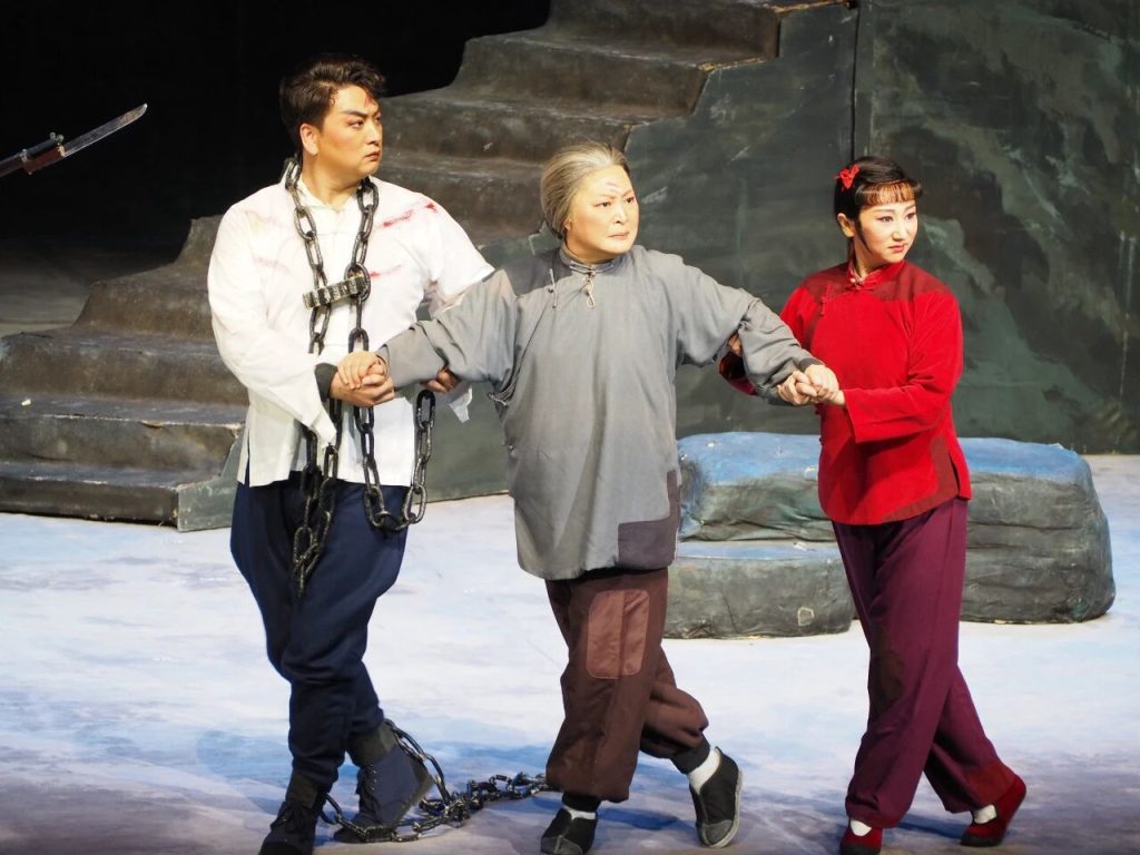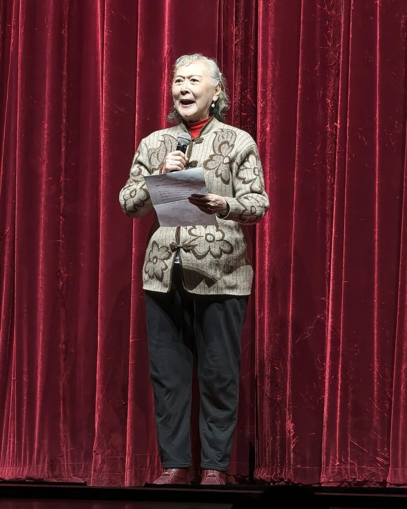 演出开场白,由当年扮演李铁梅的今年已经83岁高龄的中国著名京剧表演艺术家刘长瑜先生致辞,她饱含深情地讲述了这部戏的创作过程和发展历程,表达了她对这部戏亲身参与和持之以恒的深切感受,也表达了对革命先烈为人民的幸福抛头颅,洒热血英勇献身的感慨和敬仰。观众对刘长瑜先生的致辞报以长时间热烈的掌声。