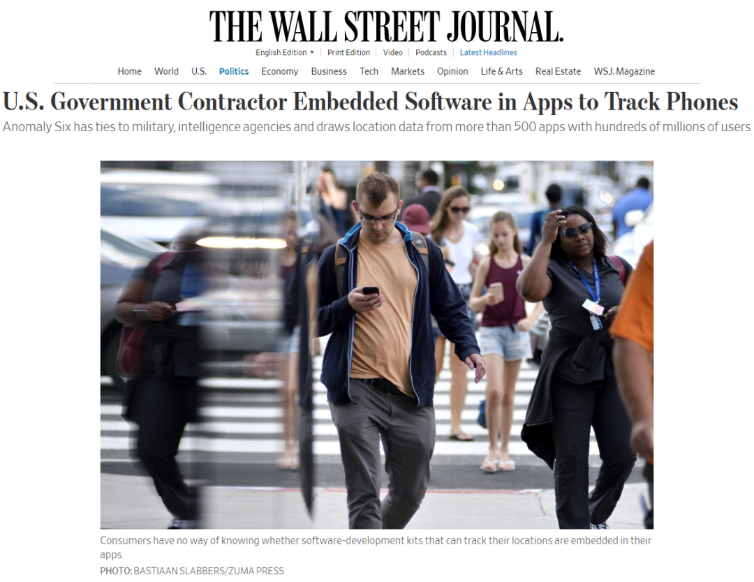 当地时间8月7日,《华尔街日报》报道称,一家与美国国防和情报界有联系的美国小公司,已经将其软件植入到超过500款移动应用程序中,使其能够追踪全球数亿用户的位置数据。