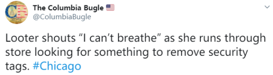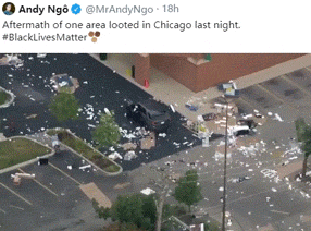“他们正在抢劫PORTILLO和WALGREENS,目测有好几百个抢劫犯!我打了911,但是没有警察接!!!”