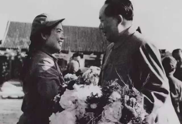 这张照片是毛主席为解秀梅等战士签名留念的场景。