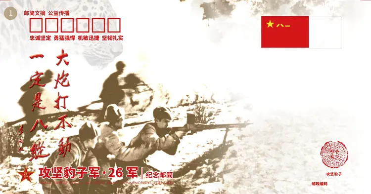 “能攻善守豹子军•26军”纪念邮简翻盖
