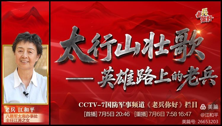 7月5日晚,CCTY-7在黄金时段播出了特别节目《太行山壮歌 英雄路上的老兵》,受到了广泛的好评。