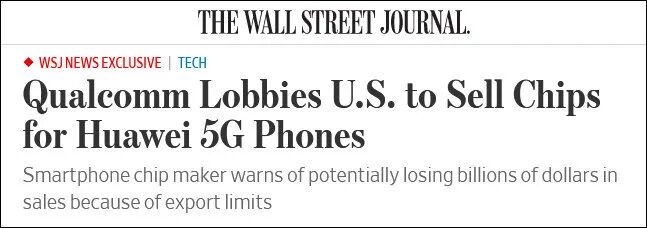 报道称,高通认为,获得与华为交易的许可将为公司带来数十亿美元的收入,并有助于为新技术的开发提供资金。反之,不但便宜了其海外竞争对手,对华为也“几乎没有影响”,因为后者可以从其他地方采购。