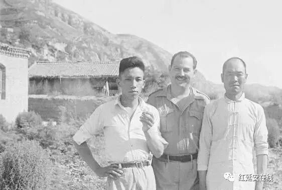 哈里森·福尔曼与不明身份的中国人(可能在陕西省延安)。1944年