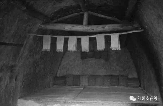 延安(中国),在悬崖窑洞住宅里的睡眠区。1944年