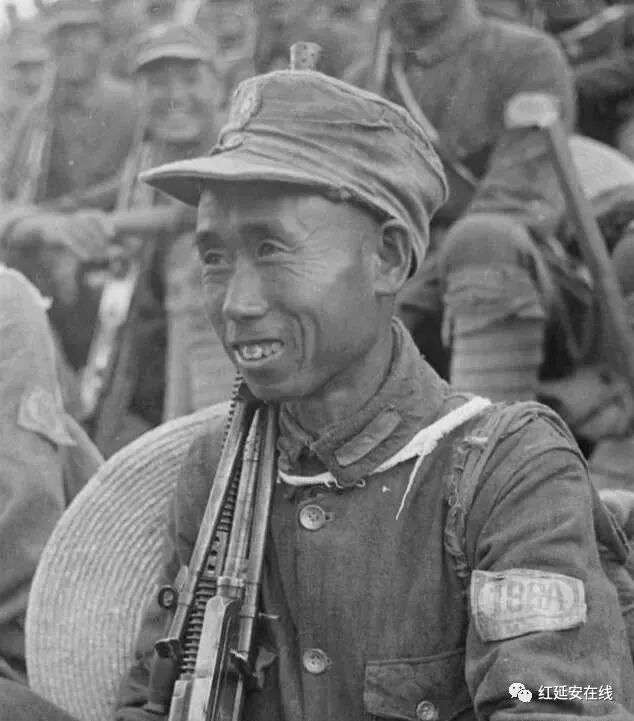 戴着国民党帽徽的人(领章显示此人是中共八路军)。1944年