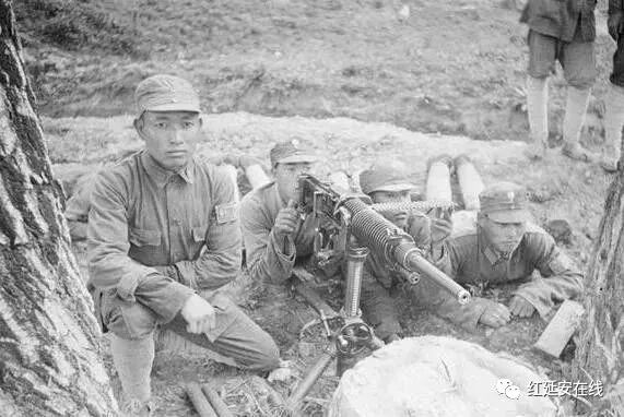 陕西省,八路军战士在现场操作机枪。(南泥湾)1944年