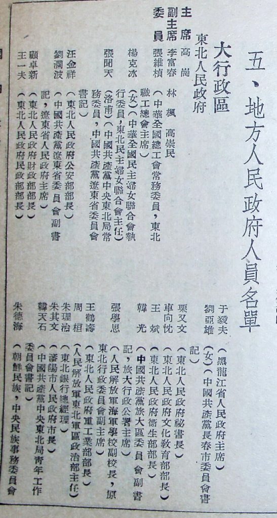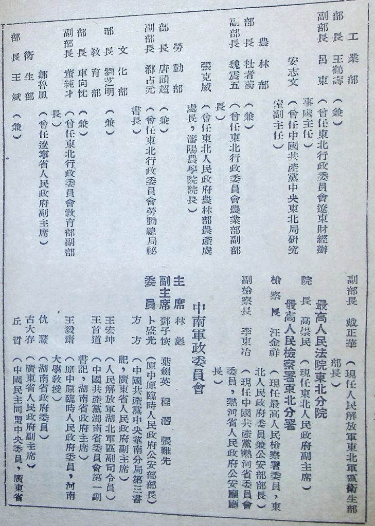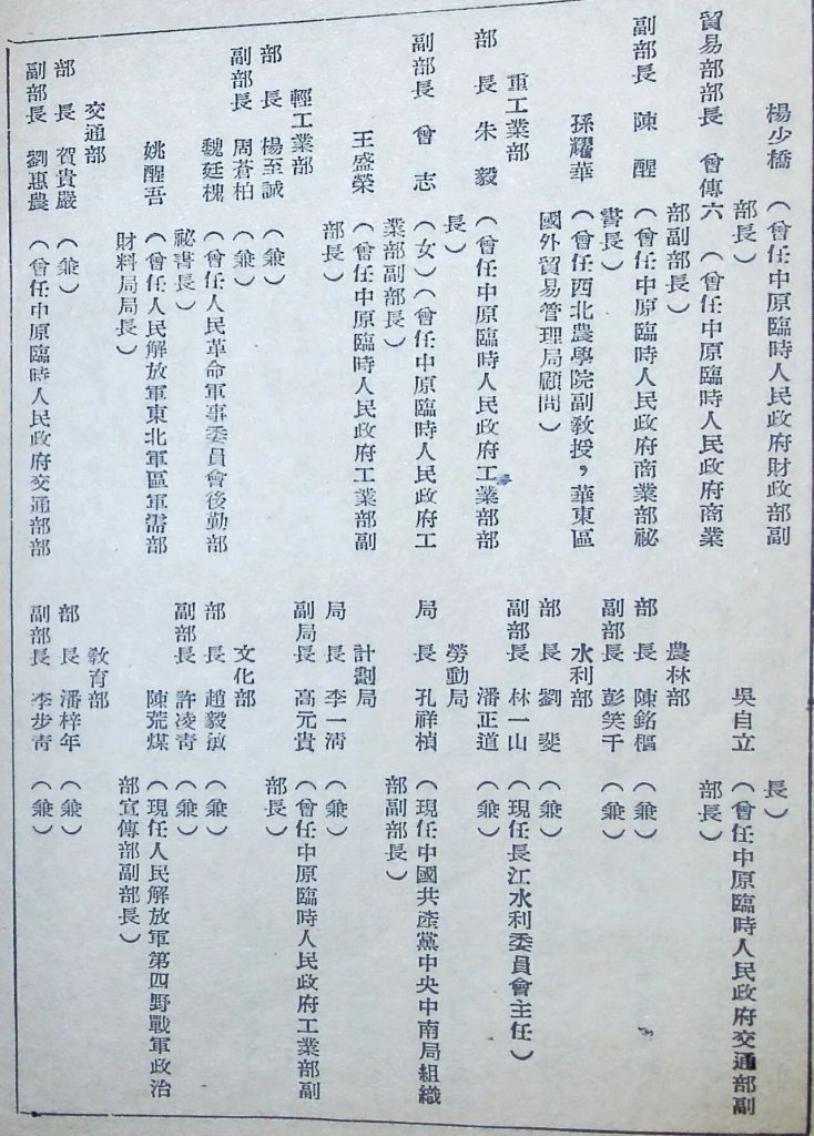 1949年开国时的地方人民政府人员名单(没有全部整理发送完)