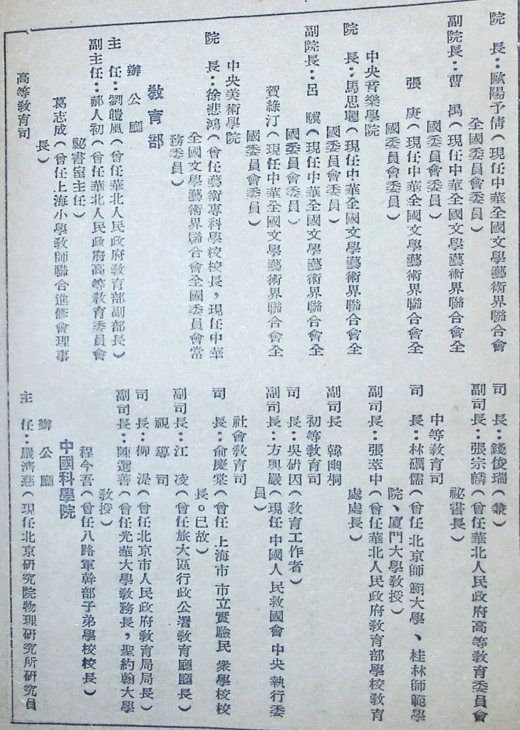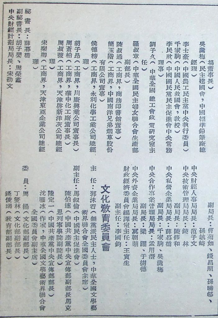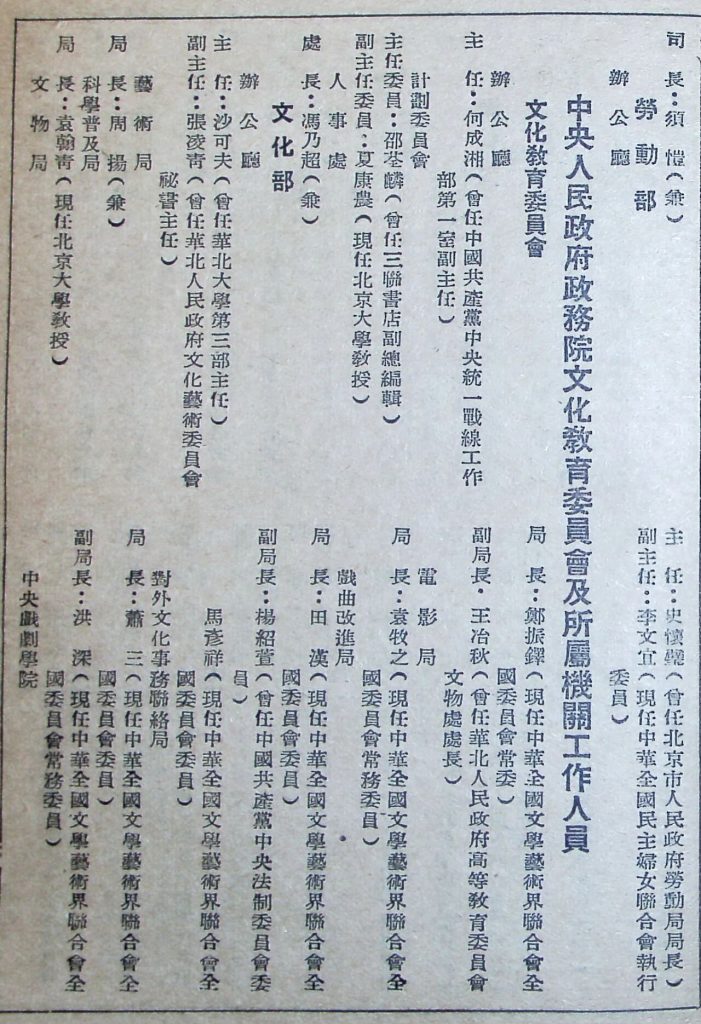 文化教育委员会主任:郭沫若(无党派民主人士,中华全国文学艺术界联合会全国委员会主席)
